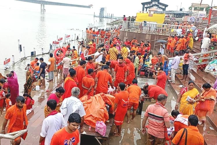 सुल्तानगंज: विश्व प्रसिद्ध श्रावणी मेले के चौथे दिन श्रावण कृष्ण पक्ष की पंचमी तिथि नाग पंचमी पर शुक्रवार को कांवरियों का सैलाब सुल्तानगंज में उमड़ा. उमसभरी गर्मी में कांवरियों को परेशानी का सामना करना पड़ा. गंगा घाट पर कड़ी धूप रहने से दोपहर मे भीड़ कम रही. सुबह-शाम भीड़ गंगा घाट पर देखी गयी. शुक्रवार को असम, मेघालय, कर्नाटक, महाराष्ट्र, गुजरात आदि राज्यों से कांवरिया सुलतानगंज से बाबानगरी के लिए प्रस्थान किए.