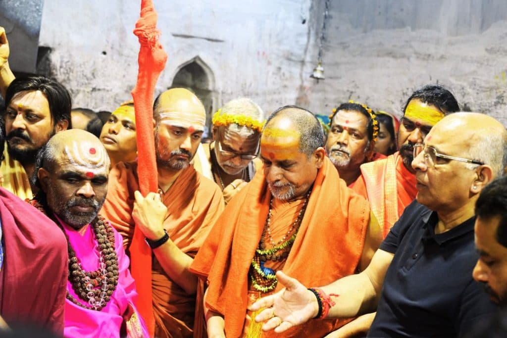 बाबा की पूजा करने के बाद शंकराचार्य प्रशासनिक भवन आये. उन्होंने अपने तीर्थ पुरोहित दानी नरौने से बातचीत की और बही-खाते में अपना नाम अंकित किया. इसके बाद वह बाबा मंदिर से निकलकर कुंडा थाना क्षेत्र स्थित करनीबाद महेश राय के आवास पर पहुंचे और विश्राम किया.