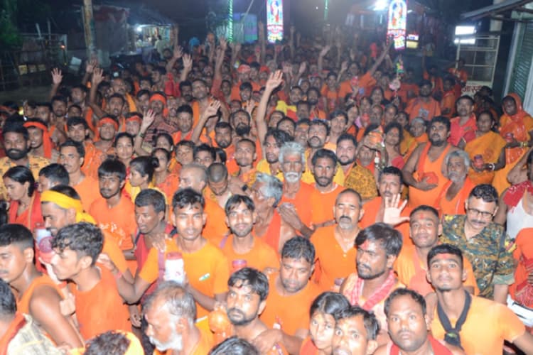 शिवगंगा में स्नान करने के बाद जल का संकल्प करा भक्त सीधे कतार में जाते हुए दिख रहे थे. मंदिर का पट खुलने के पूर्व ही भक्तों की कतार तीन किमी दूर हनुमान टिकरी के पास पहुंच गयी थी. मंदिर का पट खुलने पर कतार पंडित शिवराम झा चौक के पास आकर सिमट गयी. वहीं दिन ढलने के साथ ही भीड़ बढ़ती चली गयी. कांवरियों को जलार्पण लगाने के लिए कतार में प्रवेश कराने की व्यवस्था पंडित शिवराम झा चौक से ही जारी थी.