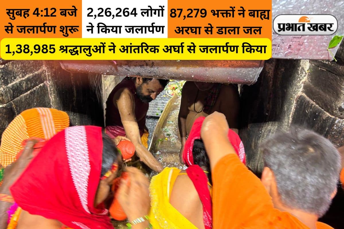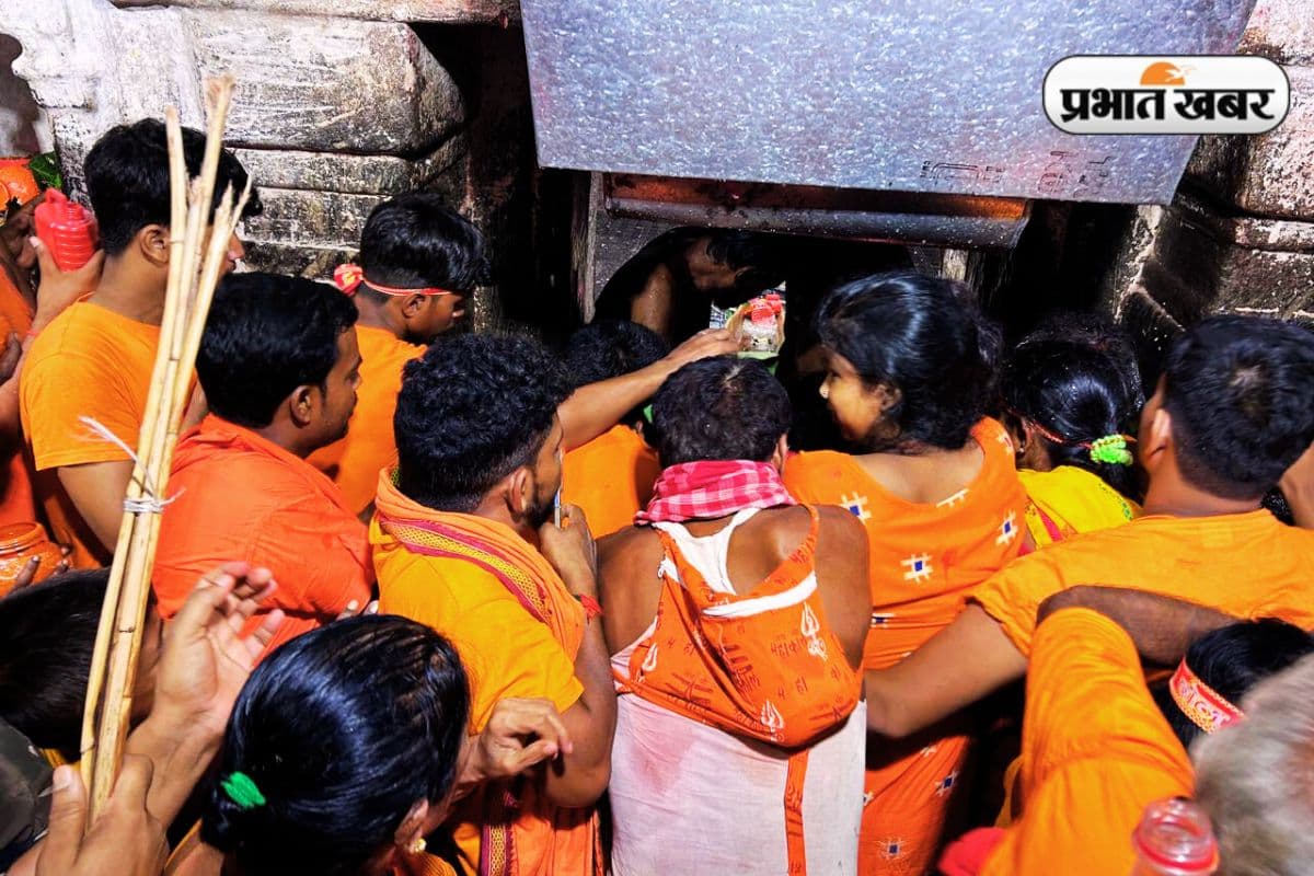 पट खुलने से पहले ही श्रद्धालुओं की कतार स्पाइरल से होते हुए करीब 12 किलोमीटर दूर नंदन पहाड़ से आगे चमारीडीह तक पहुंच गयी. इस दौरान देर शाम तक करीब सवा दो लाख कांवरिये मुख्य व बाह्य अरघा के माध्यम से जलार्पण कर चुके थे. दोपहर तीन बजे के बाद कतार घटनो पर बीएड कॉलेज परिसर से कांवरियों को भेजने की व्यवस्था जारी रही. इधर, पूरे मंदिर परिसर में प्रशासनिक समेत पुलिस पदाधिकारी, जवान, स्वयंसेवक और मंदिर समिति के सदस्य लगातार व्यवस्था में मुस्तैद रहे.