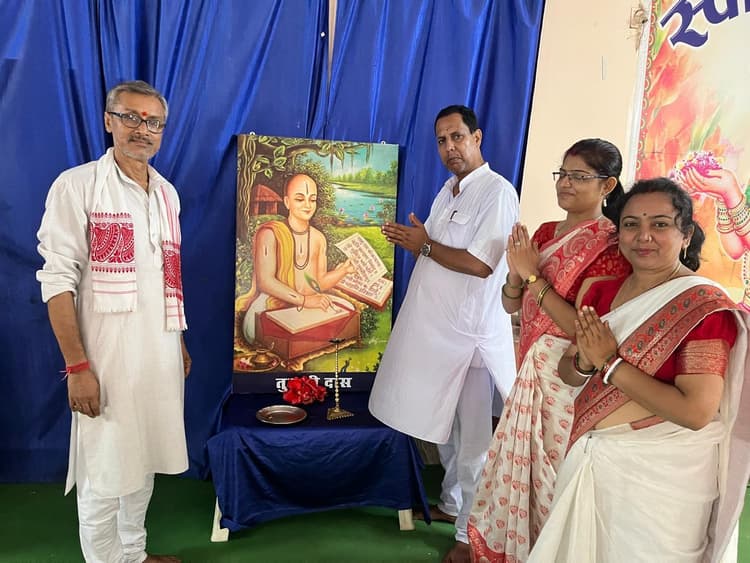 मधुपुर . महेंद्र मुनि सरस्वती शिशु विद्या मंदिर में शनिवार को संत शिरोमणि तुलसीदास की जयंती समारोह पूर्वक मनायी गयी. विद्यालय के प्रभारी प्रधानाचार्य शिवनाथ झा ने तुलसीदास की तस्वीर पर पुष्प अर्पित कर नमन किया. कार्यक्रम में छात्र-छात्राएं और आचार्य- शिक्षिकाओं ने तुलसीदास की जीवनी, उनसे जुड़े प्रेरक प्रसंग, भजन, गीत, मानस पाठ और आज के संदर्भ में उनकी प्रासंगिकता विषय पर विचार रखा. समारोह में आर्या मोहनका, साक्षी, रिया कुमारी, स्तुति प्रिया, वर्षा व याशीता ने अपनी प्रस्तुति दी. आचार्य मुकेश कुमार ने भगवान श्रीराम पर एक कविता प्रस्तुत किया. वही सोनम कुमारी ने तुलसीदास के जीवन संघर्ष व उनके कृतित्व पर अपने विचार व्यक्त किया. वरिष्ठ आचार्य परमानंद सिंह ने भजनों से उपस्थित लोगों को भाव विभोर कर दिया. प्रभारी प्रधानाचार्य शिवनाथ झा ने कहा कि आज के युग में तुलसीदास की प्रासंगिकता और बढ़ गयी है. क्योंकि तनाव मुक्त जीवन के लिए उनकी कृति का पठन पाठन हमारे जीवन को एक सकारात्मक सोच की ओर बढ़ाता है. कार्यक्रम के अंत में छात्र-छात्राओं ने श्री रामचरितमानस का सस्वर पाठ किया गया. कार्यक्रम का संयोजन किरण राय और स्वीटी मिश्रा ने किया.