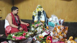 संवाददाता, देवघर : भैरव चतुर्दशी के अवसर पर बाबा मंदिर सहित आसपास के महाकाल मंदिरों में वार्षिक पूजन उत्सव का आयोजन धूमधाम से किया गया. गुरुवार की देर रात तक जटाहरा बाबा (जलसार), भैरव बाबा (भैरव घाट), दक्षिण मसान भैरव मंदिर और श्मशान भैरव की पूजा-अर्चना की गयी. श्मशान भैरव मंदिर में पंडित संजय मिश्र ने तांत्रिक विधि से वार्षिक पूजा करायी. वहीं, बाबा मंदिर प्रांगण स्थित आनंद भैरव मंदिर में मिश्र परिवार की ओर से विशेष पूजा-अर्चना की गयी. इस अवसर पर पुजारी गणेश मिश्र और आचार्य दिनकर मणि मिश्र ने तांत्रिक विधि से अनुष्ठान पूरा किया. आनंद भैरव को रोट और ठेकुआ का विशेष भोग अर्पित किया गया. साथ ही फल, नैवेद्य, फूल, बेलपत्र, दूध, दही, मधु और गंगाजल से अभिषेक किया गया. पूरे मंदिर परिसर को आकर्षक फूलों और विद्युत लाइटों से सजाया गया था. पूजा-अर्चना को सफल बनाने में मिश्र परिवार के सभी सदस्य सक्रिय रहे. वहीं, शुक्रवार को श्मशान भैरव पूजा समिति की ओर से शिवगंगा घाट पर नगर कुंवारी बटुक भोजन का आयोजन किया गया, जिसमें कुंवारी व बटुकों को हलुआ, पूरी-सब्जी सहित सात्विक भोजन परोसा गया.