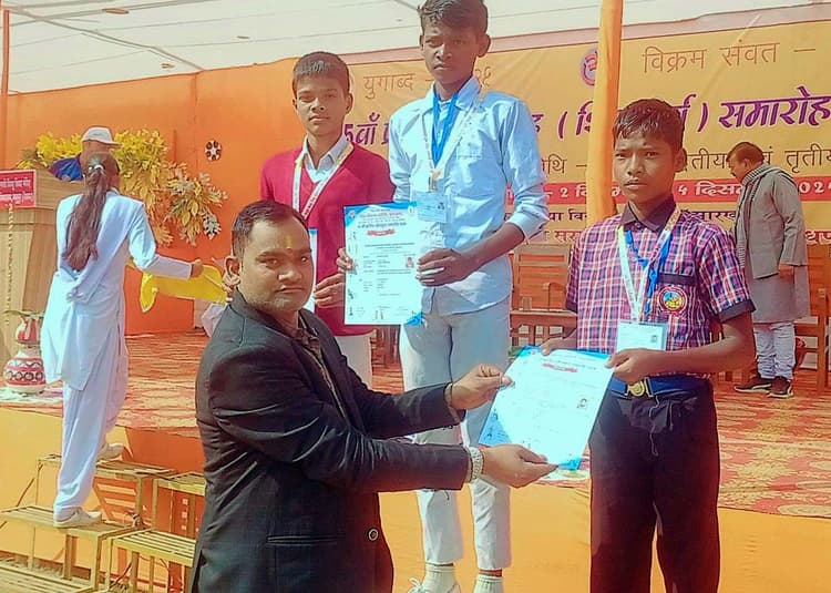मधुपुर. शहर के महेंद्र मुनि सरस्वती शिशु विद्या मंदिर में बुधवार को शिशु वर्ग का 35 वां प्रांतीय खेलकूद प्रतियोगिता संपन्न हुआ. तीन दिवसीय प्रतियोगिता के अंतिम दिन बुधवार को कबड्डी, ऊंची कूद, रिले दौड़ आदि का आयोजन किया गया. प्रतियोगिताओं के पश्चात परिणाम की घोषणा की गयी. विजेता व उपविजेताओं को मेडल और प्रशस्ति पत्र देखकर सम्मानित किया गया. खेल प्रतियोगिताओं में ओवरऑल चैंपियन का पुरस्कार बिरसानगर के विद्यालय को प्राप्त हुआ. सर्वश्रेष्ठ एथलीट लोहरदगा की छात्रा दिव्या उरांव रहीं. छात्र वर्ग के एथलेटिक्स प्रतियोगिताओं में मधुपुर विद्यालय महेंद्र मुनि दूसरे स्थान पर रहा, जिसमें छात्र सुजीत टुडू ने ऊंची कूद में प्रथम स्थान प्राप्त किया. वहीं, छात्र सुजीत, कृष्णा, अमित व कुणाल ने रिले दौड़ में द्वितीय स्थान प्राप्त किया. समापन समारोह का आयोजन भव्य रंगारंग कार्यक्रमों के साथ किया गया. इस अवसर पर अतिथि के रूप में कार्यपालक दंडाधिकारी विनय कुमार पांडेय उपस्थित रहे. उन्होंने सभी सफल छात्र-छात्राओं को मेडल व प्रशस्ति पत्र देकर सम्मानित किया. मौके पर उन्होंने कहा कि खेल में हार जीत लगी रहती है. हार भी हमें सीख देती है. हमें मन से कभी हार नहीं मानना चाहिए, बल्कि हार में हुई गलतियों से सीख लेकर आगे बढ़ना चाहिए. कार्यक्रम में मंच का संचालन प्रांतीय अधिकारी ब्रेन कुमार टुडू ने किया. कार्यक्रम के अंत में खेलों के ध्वज को उतार कर प्रांत के खेल संरक्षक सुरेश मंडल को प्रदान किया गया. यह खेल आगामी वर्षों में विभिन्न स्थलों पर आयोजित किया जाता रहेगा. बतातें चले कि इस प्रांतीय प्रतियोगिता में पूरे राज्य के 52 विद्यालयों के करीब 600 छात्र-छात्राओं ने भाग लिया. मौके पर अतिथि के रूप में देवघर विभाग प्रमुख सुरेश मंडल, विद्यालय के सचिव राजेश कुमार कोठारी, अध्यक्ष सरोज मिश्रा, कार्यक्रम संयोजक शिव कुमार बथवाल, प्रधानाचार्य मदन मोहन मिश्रा, उप-प्रधानाचार्य शिवनाथ झा, धनबाद विभाग प्रमुख विवेक नयन पांडेय, प्रांतीय प्रतिनिधि भोला पटेल, जमशेदपुर विभाग निरीक्षक तुलसी ठाकुर आदि मौजूद थे. ————————————– स्पोर्ट्स इवेंट में पूरे राज्य के 52 स्कूलों के करीब 600 छात्र-छात्राओं ने लिया भाग