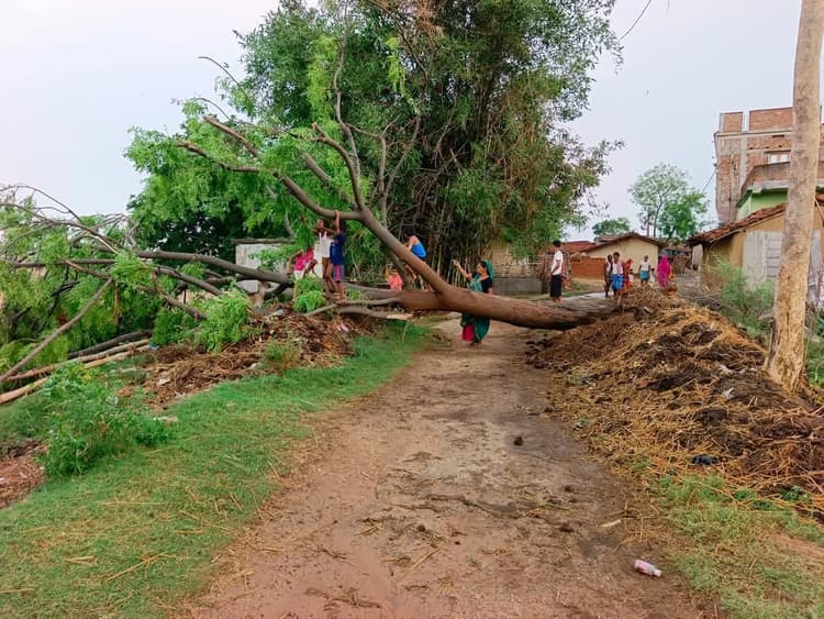 सारठ बाजार. सोमवार शाम को मौसम में अचानक बदलाव आ गया. तेज आंधी और बारिश से जनजीवन अस्त-व्यस्त हो गया है. तेज आंधी ने दर्जनों पेड़ को उखाड़ दिया है. दर्जनों घर के छप्परों को उखड़ कर क्षतिग्रस्त कर दिया है. वहीं, पत्थरड्डा पंचायत के कुंडरो गांव में करीब एक दर्जन बिजली पोल और तार को तोड़ दिया है. इससे अगल-बगल के गांवों में अंधेरा पसरा गया है. बेमौसम आंधी बारिश में सब्जी, मकई समेत अन्य फसल को नुकसान पहुंचाया है.