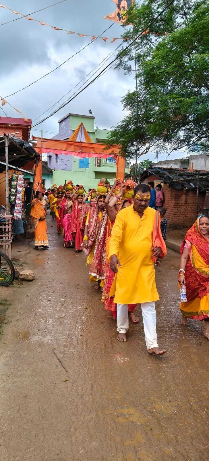 सोनारायठाढ़ी. प्रखंड क्षेत्र के जरका चांदना गांव में नव निर्मित मां शीतला मंदिर में शीतला माता की प्राण-प्रतिष्ठा को लेकर गुरुवार को पंडित कृष्णानंद झा की देखरेख में कलश यात्रा का आयोजन किया गया. कलश यात्रा का शुभारंभ पंचायत क्षेत्र के कल्याणरायठाढ़ी स्थित जोरिया में महिलाओं द्वारा जल भरकर किया गया. इस दौरान श्रद्धालु करीब चार किलोमीटर की दूरी तय कर नगर भ्रमण कर यात्रा का समापन मंदिर प्रांगण में कलश रखकर कार्यक्रम का समापन किया गया. कलश यात्रा में जरका चांदना, भिखोडीह, खोपचवा समेत कई गांव की सैकड़ों की संख्या में महिलाओं व कन्या ने भाग लिया. मां शीतला की प्राण-प्रतिष्ठा को लेकर प्रखंड क्षेत्र के विभिन्न गांवों में उत्सव का माहौल है. इसको लेकर पंचायत के मुखिया सुमित कुमार मंडल, पूर्व प्रमुख संजय कुमार राय, प्रमुख प्रतिनिधि ललित यादव, बीरेंद्र मंडल, पूर्व मुखिया दिलीप मंडल, सुबोध यादव, अमित कुमार, प्रदीप राणा, नंदू राणा सक्रिया भूमिका में नजर दिखे. वहीं, प्राण-प्रतिष्ठा को लेकर पंडित के निर्देश पर कलश यात्रा का आयोजन किया गया. जबकि रात में भजन कीर्तन किया जाएगा. इसको लेकर आसपास का माहौल भक्तिमय है.