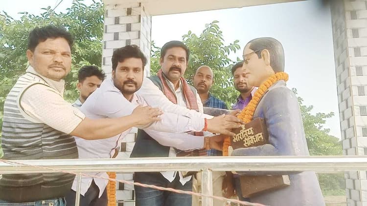 मधुपुर. सिमरा मंडल के कांशीडीह में भाजपा के विधानसभा के पूर्व भाजपा प्रत्याशी गंगा नारायण सिंह ने मंगलवार को कार्यकर्ताओें के साथ संविधान दिवस के अवसर पर संविधान निर्माता डॉ भीमराव आंबेडकर की प्रतिमा पर माल्यार्पण कर संविधान दिवस मनाया. उन्होंने कहा कि आज ही के दिन 26 नवंबर 1949 को भारत गणराज्य का संविधान बनकर तैयार हुआ था. भीमराव अंबेडकर की 125 वीं जयंती के अवसर पर 26 जनवरी 2015 को पहली बार भारत के प्रधानमंत्री नरेंद्र मोदी द्वारा संविधान दिवस मनाने की परंपरा की शुरुआत की गयी थी. तब से प्रत्येक वर्ष संविधान दिवस श्रद्धा और निष्ठा के साथ मनाया जाता है. मौके पर कुंदन कुमार, नरोत्तम दास,सपन गुप्ता,भोले शंकर दास, खोसो पंडित आदि मौजूद थे.