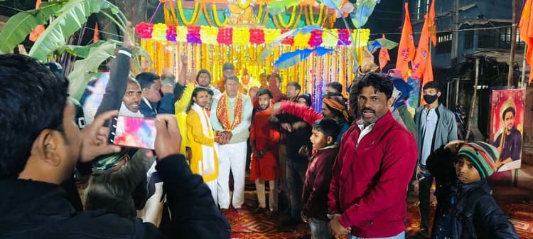 पालोजोरी. श्रीरामलला की प्राण-प्रतिष्ठा की पहली वर्षगांठ के अवसर पर पालोजोरी में जश्न का माहौल देखा गया. इस अवसर पर पालोजोरी के आंबेडकर चौक स्थित महावीर मंदिर कमेटी से जुड़े युवाओं ने भव्य कार्यक्रम का आयोजन किया. कमेटी के सदस्यों ने इस अवसर पर पालोजोरी बाजार को हनुमानी पताका से पाट दिया. साथ ही आंबेडकर चौक स्थित हनुमान मंदिर को आकर्षक ढंग से सजा कर विशेष पूजा-अर्चना की गयी. सबसे पहले सुबह विधि विधान के साथ पूजा-अर्चना हुई. इसके उपरांत संध्या के समय दीप महोत्सव व हनुमान चालीसा पाठ का आयोजन हुआ. उसके बाद श्रद्धालुओं के लिए भव्य भंडारा का आयोजन किया गया. इसमें हजारों की संख्या में श्रद्धालुओं ने हिस्सा लिया. वहीं, पूर्व विधायक रणधीर कुमार सिंह ने हनुमान चालीसा पाठ व भंडारा में हिस्सा लिया. इस अवसर पर कमेटी के सदस्यों ने पूर्व विधायक को रामनामी पट्टा ओढ़ाकर सम्मानित किया. मौके पर कमेटी के सक्रिय सदस्य मौजूद थे. हाइलार्ट्स : दीप महोत्सव, हनुमान चालीसा पाठ व भंडारा का आयोजन श्रीरामलला की प्राण-प्रतिष्ठा की पहली वर्षगांठ पर पालोजोरी में जश्न पूर्व विधायक सहित हजारों लोगों ने कार्यक्रम में लिया हिस्सा