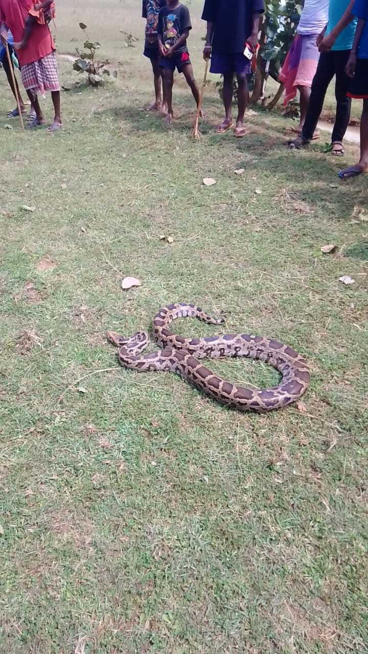 पालोजोरी. प्रखंड क्षेत्र के आसपास के इलाके में इनदिनों अजगर सांप निकल रहा है. शनिवार को भुरकुंडी पंचायत के भोंराडीह गांव के जंगल झाड़ी के पास लोगों ने एक अजगर को देखा गया. इसके बाद गांव व आसपास के क्षेत्र में इसकी सूचना मिलते ही वहां सैकड़ों की संख्या में लोगों का जुटान हो गया. इसके बाद इसकी सूचना वन विभाग के अधिकारियों को दी गयी. सूचना मिलते ही दुमका वन विभाग की टीम अजगर का रेस्क्यू कर अपने साथ ले गयी. इससे पूर्व भी प्रखंड के कड़रसाल गांव के पास कुछ दिनों पूर्व एक अजगर का बच्चा मिला था, जिसे लोगों ने पकड़ कर फुलजोरी के पहाड़ में छोड़ दिया था.