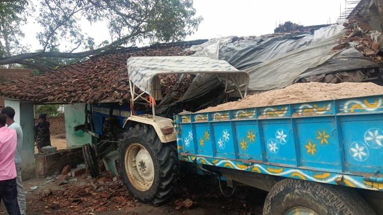 पुलिस से बचने के चक्कर में अवैध बालू लोड ट्रैक्टर घर में घुसा, बाल-बाल बचे लोग
