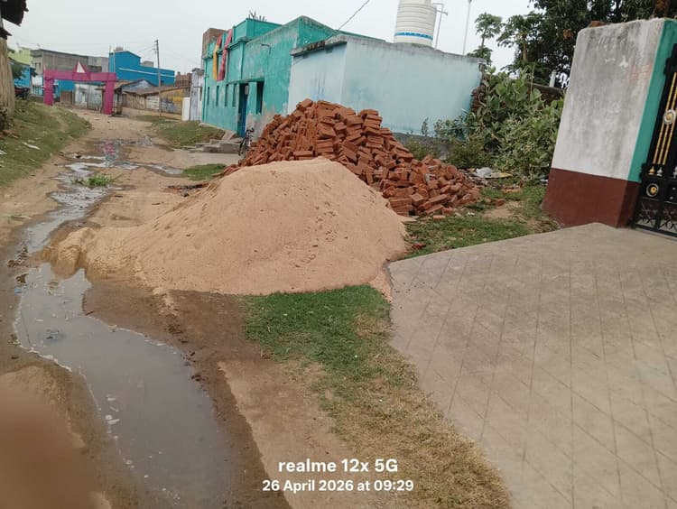 बाजार में ईंट-बालू गिट्टी गिराकर सड़क अवरुद्ध करने से राहगीर परेशान