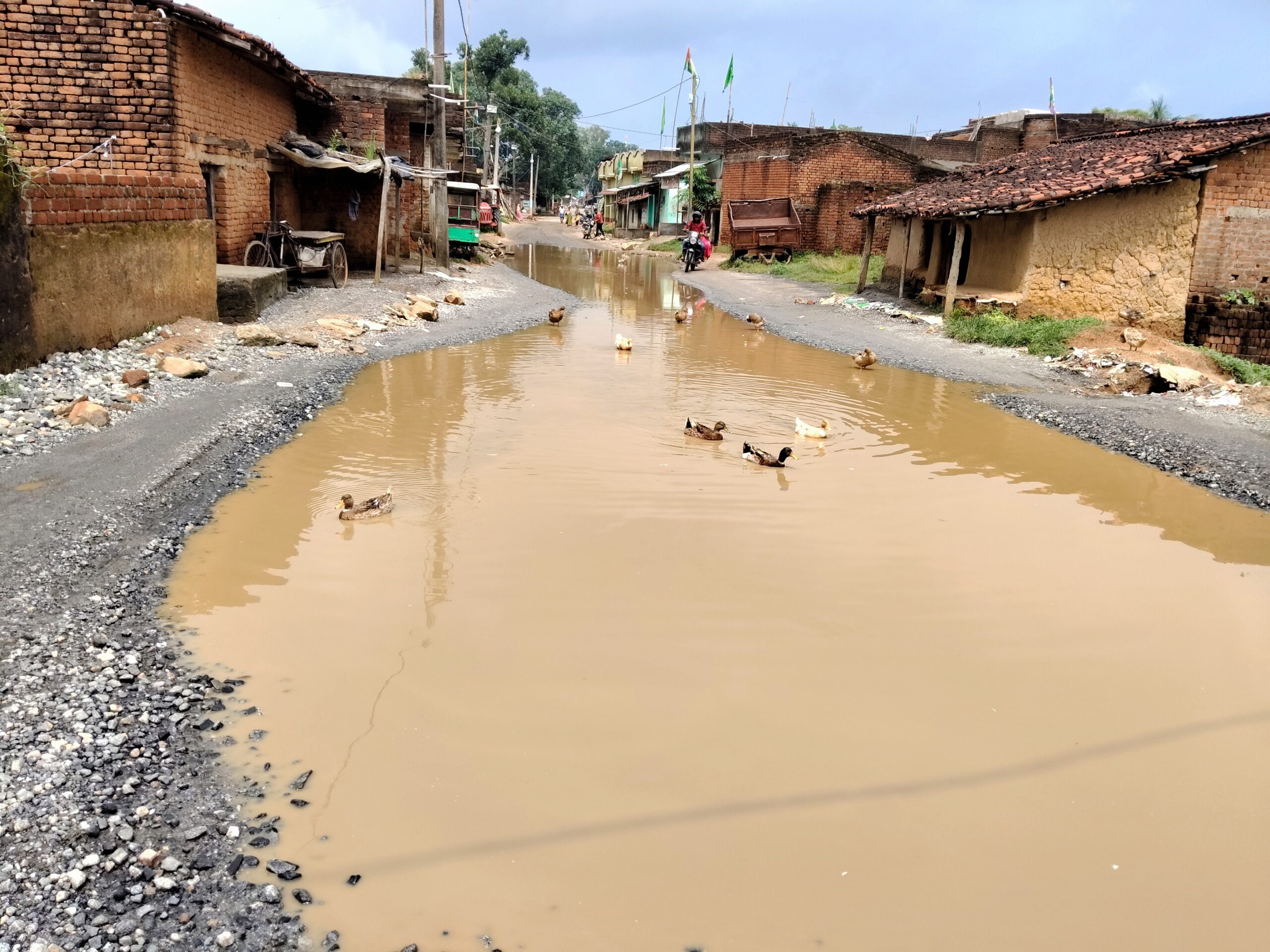 देवीपुर. देवीपुर-मनियारपुर मुख्य मार्ग में झूमरबाद गांव के पास सड़क गड्ढे में तब्दील हो गयी है. बारिश का पानी बीच सड़क पर उभरे गड्ढों में जमा हो गया है. वहीं, उस पानी में बतख तैरते नजर आते हैं. विदित हो कि प्रत्येक दिन दर्जनों की संख्या में हाइवा, ट्रक में लदे गिट्टी का परिचालन होता है, जिससे ग्रामीण सड़क पूरी तरह से ध्वस्त हो गया है. बड़े-बड़े गड्ढे होने से ग्रामीणों का आवागमन दूभर हो गया है. बिहार को जोड़ने वाली यह सड़क अपनी बदहाली पर आंसू बहा रही है. इस सड़क से प्रतिदिन सैकड़ों की संख्या में छोटी बड़ी गाड़ियों का आवागमन होता है. ग्रामीणों ने बताया कि इस सड़क में आये दिन दुर्घटना होती है. हालांकि कुछ दिन पहले सड़क की मरम्मत की मांग को लेकर ग्रामीणों ने सड़क को जाम कर दिया था. इसके बाद ग्रामीणों व राहगीरों की समस्या को देखते हुए पीडब्ल्यूडी विभाग द्वारा सड़क में मेटल व डस्ट देकर जेसीबी से गड्ढे को भरकर प्लेन कर दिया गया था, लेकिन तत्काल समस्या जस की तस बनी हुई है. स्थानीय ग्रामीणों ने सड़क मरम्मत कराने की मांग की है. हाइलार्ट्स : गड्ढे के जमा पानी में तैरते हैं बतख