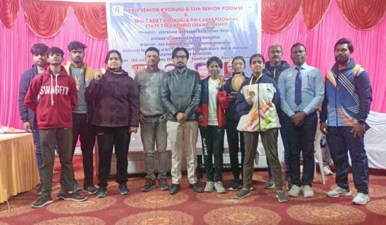 मधुपुर. जमशेदपुर में आयोजित 24 वां राज्य सीनियर 13 कैडेट ताइक्वांडो प्रतियोगिता में खिलाड़ियों ने मधुपुर का नाम रौशन किया. प्रतियोगिता में कुल नौ प्रतिभागियों ने हिस्सा लिया था, जिसमें अनुष्का सिंह ने अपने प्रतिद्वंदी को हराकर स्वर्ण पदक जीता. वहीं, अभय कुमार को रजत पदक मिला. जबकि दिव्या हेंब्रम, पल्लवी बथवाल व संतोष कुमार यादव ने कांस्य पदक प्राप्त कर शहर का मान बढ़ाया. इनकी इस जीत पर मधुपुर के खिलाड़ियों में काफी उत्साह का माहौल है. क्लब के अध्यक्ष संजय शर्मा ने सभी सफल खिलाड़ियों सहित अन्य खिलाड़ियों को उनके उज्ज्वल भविष्य की शुभकामना दी गयी. उन्होंने कहा आप सभी के लगातार मेहनत का यह नतीजा है. आप सभी अपना सर्वश्रेष्ठ देने का लक्ष्य रखिये, सफलता जरूर मिलेगी. मौके पर क्लब के कोच दीपक मैसी के कहा क्लब के बच्चे हर प्रतियोगिता में अच्छा प्रदर्शन करते आ रहे हैं. उन्हें ओर मेहनत करने की आवश्यकता है. आगे की प्रतियोगिता के लिए बेहतर तैयारी करने की जरूरत है. क्लब के सदस्य पंकज पीयूष, कुंदन भगत, नंद किशोर शर्मा, अंकित लच्छीरामका, सुष्मिता चक्रवर्ती, सूरज बर्मन, दीपक मिश्रा, इग्नासुस अब्राहम, प्रसून बागची, सुनीता कुमारी, रिमझिम भारती सहित अन्य सदस्यों ने भी बच्चों की इस सफलता पर खुशी जाहिर की है.