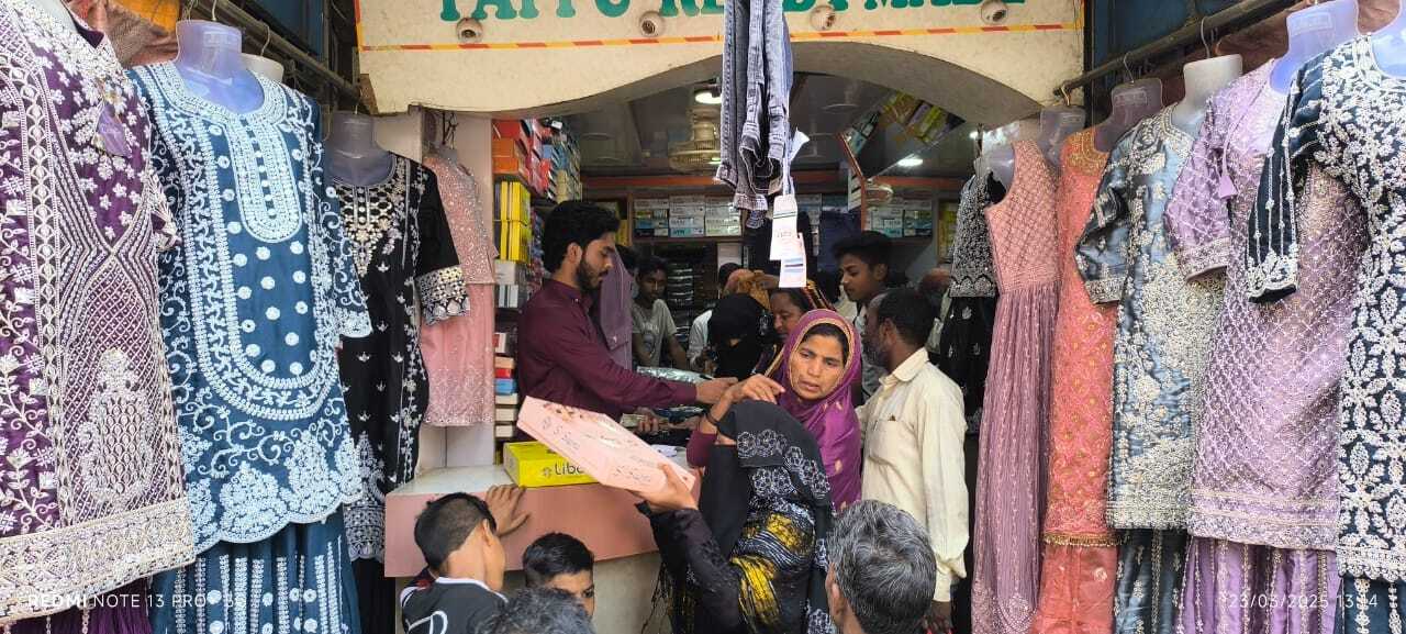 मधुपुर . ईद को लेकर बाजार में रौनक देखने को मिल रही है. शहर के गांधी चौक, हटिया रोड, हाजी गली, स्टेशन रोड, राजबाड़ी रोड आदि जगहों में देर रात तक ईद की खरीदारी को लेकर चहल पहल का माहौल देखा जा रहा है. लोग देर रात तक खरीदारी कर रहे है. रमजान अपने अंतिम पड़ाव पर है. कुछ ही दिन रोजे के बचे है. ऐसे में ईद को लेकर लोग उत्साह के साथ खरीदारी में लगे है. कपड़े की दुकान हो या मनिहारी सभी तरह की सामग्री की खरीदारी में लगे हुए है. इस बार महिलाओं को अफगानी लहंगा, प्लाजो, बनारसी घाघरा, आलिया सूट, अलिना कट सूट, सरारा सूट, नायरा सूट, क्रुपटॉप, लॉग टॉप, लॉगफ्रक आदि काफी पसंद आ रहे है. युवाओ को जिंस, टी शर्ट, खान ड्रेस के अलावा अन्य कई तरह के सामान भी पसंद आ रहे है. बच्चे विभिन्न डिजाइन की टोपी, तो महिलाएं रंग-बिरंगी चूड़िया की खरीदारी करने में जुटी हैं. त्योहार पर मुंह मीठा कराने के लिए सेवई व लच्छे की भी लोग जमकर खरीदारी कर रहे है.