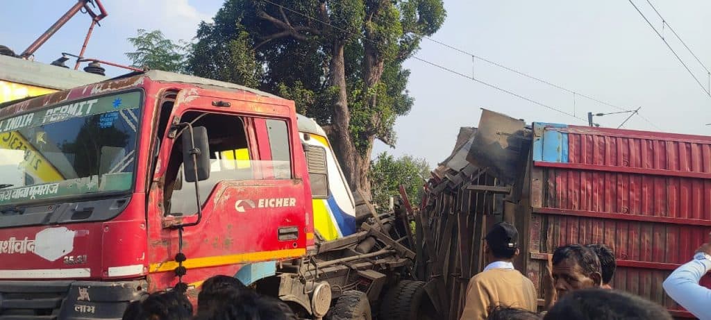 ट्रक और ट्रेन के बीच हुई टक्कर के बाद हावड़ा-नई दिल्ली रेलखंड पर ट्रेनों की आवाजाही रोक दी गई है. घटना को लेकर रेल सूत्रों और स्थानीय लोगों ने बताया कि गेटमैन की लापरवाही से यह हादसा हुआ है. घटना के बाद गेटमैन फरार है. वहीं दुर्घटनाग्रस्त ट्रक का चालक और खलासी भी मौके से फरार हो गया.