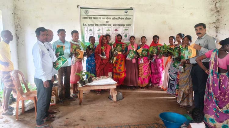 सारठ. आदर्श ग्राम बहादुरपुर के 94 महिलाओं को स्वरोजगार से जोड़ने को लेकर शुक्रवार को जिला कृषि पदाधिकारी देवघर के निर्देश पर लीड्स देवघर की ओर से पोषण वाटिका निर्माण का प्रशिक्षण दिया गया. इस दौरान सभी महिलाओं को ऑर्गेनिक दवा, केला का पौधा, वाटिका के लिए बीज, कीटनाशक आदि दवा का वितरण कर लाभुक महिलाओं को वाटिका निर्माण के लिए लीड्स देवघर के विकास कुमार द्वारा प्रशिक्षण दिया गया. महिलाओं को बीज बोने व पटवन की विधि की जानकारी दी गयी. कहा कि वाटिका में खुद के लिए ताजी व हरि सब्जी उगा कर सेवक कर सकते है ज्यादा होने पर बिक्री कर आर्थिक लाभ भी ले सकते हैं. मौके पर वार्ड सदस्य अमिताभ सोरेन, सहिया तुलसी हेंब्रम, आंगनबाड़ी सेविका मसूदी किस्कू, सहायिका सरिता मुर्मू, श्रीमती हेंब्रम, फूलवती देवी, द्रोपती देवी, अनिता मरांडी, सुनीता, नेपाल समेत बड़ी संख्या में महिलाएं मौजूद थीं. हाइलाइर्ट्स: आदर्श गांव बहादुरपुर में वाटिका निर्माण को लेकर प्रशिक्षण