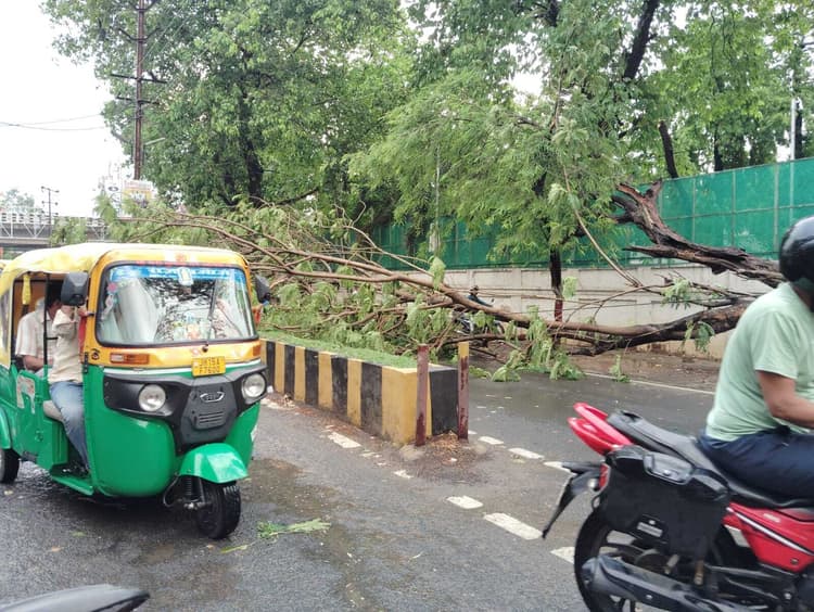 फव्वारा चौक स्थित ओएसिस पार्लर के सामने एक पेड़ सड़क पर गिरने से आवागमन बाधितहाइकोर्ट गेस्ट हाउस के समीप सड़क पर पेड़ गिरने से आवागमन पर पड़ा असर