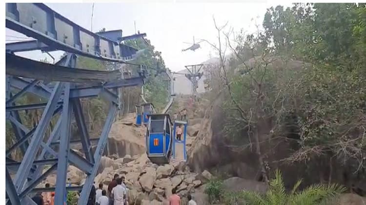 देवघर जिले के त्रिकूट पहाड़ रोपवे हादसे में राहत-बचाव कार्य जारी है. फंसे लोगों को सुरक्षित निकालने के लिए वायु सेना की मदद ली जा रही है. दो हेलिकॉप्टर से रेस्क्यू किया जा रहा था, लेकिन दो बार प्रयास करने के बाद भी किसी को नहीं निकाला जा सका है. हेलिकॉप्टर तीसरी बार देवघर एयरपोर्ट लौट चुका है. अब फिर हेलिकॉप्टर तैयारी के साथ रेस्क्यू करने पहुंचेगा. इस बीच ड्रोन के जरिए ट्रॉली में फंसे लोगों तक पानी पहुंचाया जा रहा है. इस हादसे में कुल 48 लोग अब तक फंसे हुए हैं.