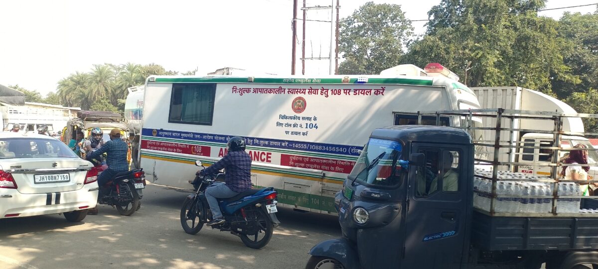 लेकिन ट्रक को स्टार्ट नहीं किया जा सका. इस कारण वाहन सड़क पर ही फंसा रहा . इससे करीब सात घंटे तक आवागमन पूरी तरह से बाधित हो गया. काफी देर के बाद वाहन को हटाया गया. जाम के कारण सड़क के दोनों ओर करीब दो किमी तक वाहनों की लंबी कतार लग गयी. इसके बाद जाम की सूचना थाना के दी गयी. सूचना मिलते ही थाना से एसआइ रामानुज सिंह, एएसआइ उमेश पांडे व जवानों ने काफी मशक्कत के बाद जमा को हटाया. जाम रहने के कारण राहगीरों को काफी परेशानियों का सामना करना पड़ा.जाम में फंसी रही एंबुलेंस
