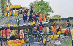 टैंकर आते ही पानी के लिए मच जाती है होड़