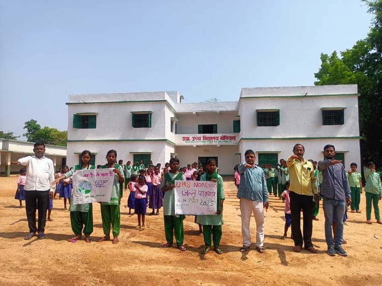 मारगोमुंडा. प्रखंड क्षेत्र के उत्क्रमित उच्च विद्यालय नोनीयाद में बुधवार को जल पखवाड़ा का आयोजन किया गया. विद्यालय के छात्र-छात्राओं ने जल को शुद्ध व संरक्षित रखने का प्रण लिया. साथ ही एक से बढ़कर एक आकर्षित जल संरक्षण पर स्लोगन लिखित चार्ट पेपर तैयार किया. इस अवसर पर विद्यालय के प्रभारी प्रधानाध्यापक अब्दुल गफ्फार ने जल की महत्व पर प्रकाश डालते हुए आवश्यकता से अधिक जल प्रयोग करने से बचने, घर या स्कूल में नलों को खुला न छोड़ने की सलाह दी. उपस्थित शिक्षकों ने छात्र-छात्राओं के साथ मिलकर जल पखवाड़ा संबंधित जल शपथ ली. मौके पर संगीत शिक्षक हिरेंद्र पंडित ने भी छात्रों को जल पखवाड़ा के बारे में विस्तारपूर्वक जानकारी दी. बताया जाता है कि क्षेत्र के सभी विद्यालयों में 16 से लेकर 30 अप्रैल तक पानी पखवाड़ा कार्यक्रम का आयोजन किया जाएगा. मौके पर सुधीर कुमार तिवारी, उत्तम कुमार चंद्र आदि मौजूद थे. —————- मारगोमुंडा में विद्यालय में जल पखवाड़ा का हुआ आयोजन