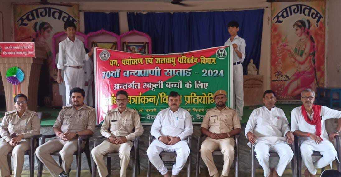 मधुपुर . स्थानीय महेंद्र मुनि सरस्वती विद्या मंदिर प्रांगण में शुक्रवार को वन, पर्यावरण व जलवायु परिवर्तन विभाग के तत्वावधान में वन्य प्राणी सप्ताह मनाया गया. इस दौरान स्कूली बच्चों के बीच चित्रकला, निबंध और क्विज आयोजित की. कार्यक्रम की अध्यक्षता विद्यालय के प्रधानाचार्य मदन मोहन मिश्रा ने किया. वन पर्यावरण और जलवायु के संतुलन पर उपस्थित अतिथियों ने अपने-अपने विचार व्यक्त किये. निर्णायकों के निर्णय के आधार पर चित्रकला में विवेक कुमार को प्रथम, अनुज कुमार को द्वितीय और आनंद कुमार को तृतीय स्थान प्राप्त हुआ. निबंध प्रतियोगिता में सिमरन को प्रथम स्थान, याषिता को दूसरा स्थान और नंदनी कुमारी को तीसरा स्थान मिला. क्विज में छत्रपति शिवाजी ग्रुप को प्रथम, लक्ष्मीबाई ग्रुप को द्वितीय और महाराणा प्रताप ग्रुप को तृतीय स्थान प्राप्त हुआ. प्रतियोगिता की व्यवस्था विद्यालय के प्रतियोगिता प्रमुख देवाशीष चटर्जी ने किया. पुरस्कार वितरण समारोह का मंच संचालन नरेश पटेल ने किया. वन, पर्यावरण व जलवायु परिवर्तन विभाग की ओर से विद्यालय में उप -परिसर पदाधिकारी तबस्सूम परवीन, अमिष आशीष, चंद्र मोलेश्वर दास और प्रमोद राणा के निर्देशन में तीनों प्रतियोगिताएं हुई. विद्यालय स्तरीय कार्यक्रम का संयोजन विनोद कुमार तिवारी ने किया. वन बचाओ, जीवन बचाओ ” के संकल्प के साथ कार्यक्रम का समापन हुआ.