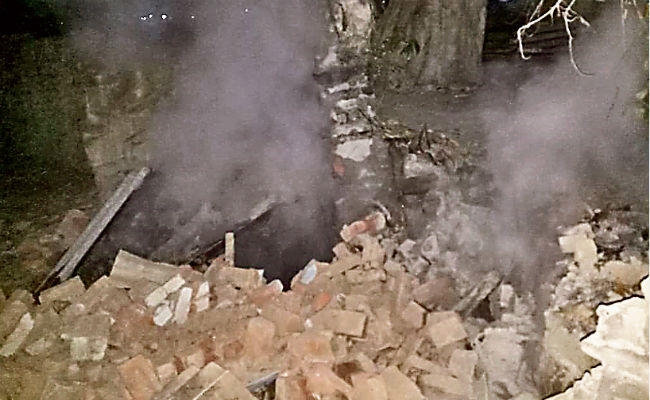 धंसी जगह से हो रहा है गैस रिसाव