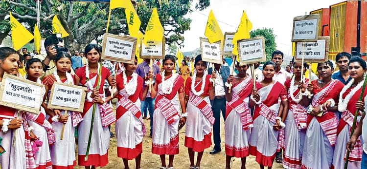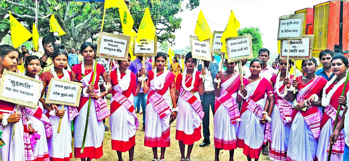 वक्ताओं ने कहा : कुड़मि को साजिश के तहत एसटी की सूची से हटाया गयाजुलूस में शामिल बालिकाएंDhanbad News: कुड़मालि भाखि चारि आखड़ा के बैनरतले कुडमि समाज ने रविवार को राजगंज के बागदाहा में दिवारात्रि जागरण कार्यक्रम का आयोजन किया. कार्यक्रम में धनबाद, बोकारो, गिरिडीह, हजारीबाग, कोडरमा के अलावा बंगाल, आसाम व ओडिशा से समाज के पांच हजार से अधिक लोगों का जुटान हुआ. कार्यक्रम में कुड़मि संस्कृति का नजारा दिखा. इससे पूर्व मशाल जुलूस निकाला गया. बूढ़ा बाबा व स्थानीय देवी-देवताओं की पूजा की गयी. महतो राजू सांखुआर ने आखडा सेउरन की शुरुआत की. शाम में 81 गुष्टी का दीया जलाकर पुरखों को याद किया गया. पश्चिम बंगाल के कुड़मालि गायक गोविंदलाल हस्तुआर, कीर्तन मुतरूआर, लालजी हिंदइआर, पार्वती हिंदइआर ने तेरह ताल झुमर, भक्तिमति बानूआर का पातानाच, निचितपुर भाखिचारी दल, बोकारो के कुड़मालि आखड़ा दलों द्वारा नृत्य व गीत प्रस्तुत किया गया.