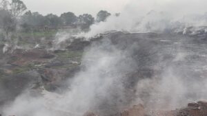 Dhanbad News : सोमवार की सुबह से शुरू हुई बारिश का पानी लोयाबाद बांसजोड़ा 12 नंबर के समीप लगी आग व गैस में पड़ते ही निकली धुआं युक्त वाष्प ने इलाके को अपनी जद में ले लिया. दिन में ही रात सा अंधकार सा छा गया. बारिश का पानी आग पर पड़ते ही भारी मात्रा में गैस व धुआं तेजी से ऊपर उठने लगा और देखते ही देखते आस पास के इलाके को अपनी आगोश में ले लिया. हालांकि सिजुआ क्षेत्रीय प्रबंधन की बात मानें तो इस अग्नि प्रभावित क्षेत्र की मिट्टी की भराई करने के लिए 44 लाख रुपए की स्वीकृति मिल गयी है. कोष नहीं रहने के कारण काम शुरू नहीं हो सका है. जहरीली गैस से इधर से बाइक व कार से गुजर रहे लोगों को लाइट जला कर जाना पड़ा, वहीं राहगीरों को भी इधर से गुजरते समय दम घुटने जैसे महसूस होने लगा. इस संबंध में जीएम निर्झर चक्रवर्ती ने बताया कि मिट्टी की भराई के लिए 44 लाख रुपए की स्वीकृति मिली है. कोष उपलब्ध होते ही मिट्टी की फिलिंग करा दी जायेगी.