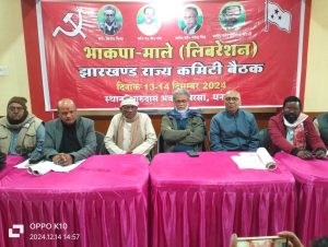 भाकपा माले राज्य कमेटी की बैठक 13-14 दिसंबर को माले कार्यालय निरसा में सम्पन्न हुई. अध्यक्ष मंडली में पूर्व विधायक आनंद महतो, हलधर महतो, मिथिलेश सिंह, गीता मंडल, जेएन सिंह थे. संचालन राज्य सचिव मनोज भक्त ने किया. दो दिवसीय बैठक में करीब एक सौ से अधिक प्रतिनिधियों ने राज्य भर से भाग लिया. मौके पर महासचिव दीपांकर भट्टाचार्य ने विधानसभा चुनाव में महागठबंधन की जीत पर हर्ष व्यक्त किया गया. कहा कि गठबंधन में तीन सीटों पर बात बनी थी. उनमें दो सीटें हमने जीती है.बगोदर सीट की हार को पार्टी ने गंभीरतापूर्वक लिया है. सदस्यता अभियान चलाने का फैसला किया गया. 22-23 अप्रैल राज्य सम्मेलन से पहले शाखा कमेटियों का सम्मेलन करने का फैसला लिया गया. 18 दिसंबर को विनोद मिश्रा व बिनोद बिहारी महतो की पुण्यतिथि पर संकल्प दिवस, 16 जनवरी को महेंद्र सिंह का शहादत दिवस, 18 दिसंबर को राज्य स्तरीय कार्यकर्ता कन्वेंशन, 25 जनवरी को संविधान मार्च व 26 जनवरी को संविधान पाठ्य के साथ झंडोत्तोलन करने का फैसला लिया गया. 14 अप्रैल आंबेडकर जयंती व गुरुदास चटर्जी शहादत दिवस, 22 अप्रैल को पार्टी स्थापना दिवस पर राज्य सम्मेलन बोकारो में करने का निर्णय लिया गया.ये थे मौजूद