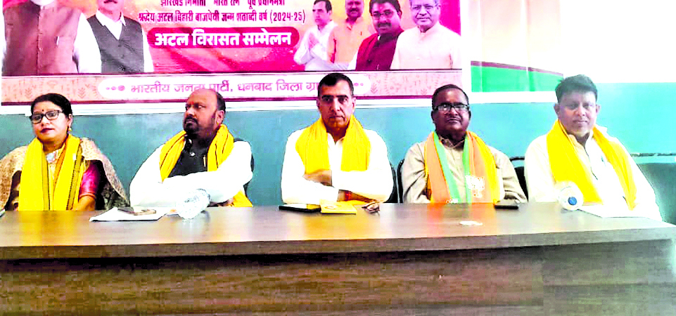 पूर्व प्रधानमंत्री भारत रत्न अटल बिहारी वाजपेयी की जन्मशताब्दी वर्ष के उपलक्ष्य में जिला कार्यालय में अटल विरासत सम्मेलन का आयोजन किया गया. भाजपा के प्रदेश उपाध्यक्ष बालमुकुंद सहाय मुख्य वक्ता के रूप में शामिल हुए. अध्यक्षता ग्रामीण जिलाध्यक्ष घनश्याम ग्रोवर तथा संचालन जिला महामंत्री निताय रजवार ने किया. इस अवसर पर अटल बिहारी वाजपेयी सरकार के समय दायित्व में रहे वरिष्ठ भाजपाइयों को सम्मानित किया गया. सम्मानित होने वालों में जिला मीडिया प्रभारी रतिरंजन गिरि, गिरिजा शंकर उपाध्याय, महादेव कुंभकार, मनोज मिश्रा, बलदेव महतो शामिल थे. श्री सहाय ने कहा कि झारखंड राज्य अटल बिहारी वाजपेयी की देन है. अटल जी ने गठबंधन की सरकार चलाकर देश मे नया कीर्तिमान स्थापित किया. उन्होंने अंत्योदय के उत्थान के लिए अनेकों योजनाएं लागू की थी. आज मोदी सरकार उनके द्वारा चलाये गए अनेकों योजनाओं को चला रही है. वे राजनीति के अजातशत्रु थे. झारखंड से उनका अटूट प्रेम था. उनका मानना था कि सत्ता का विकेंद्रीकरण करके आम ज्यादा विकास कर सकते हैं. उनके कार्यकाल में न केवल झारखंड बल्कि छत्तीसगढ़ और उत्तराखंड राज्य बना.