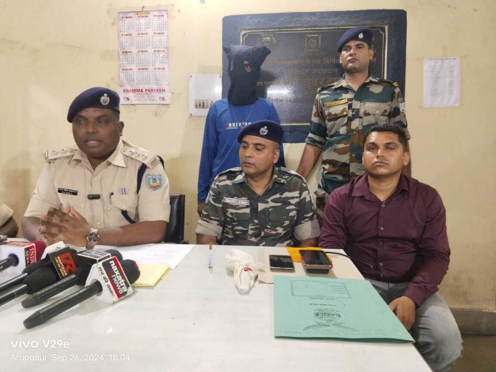 गिरफ्तार युवक व जानकारी देते निरसा एसडीपीओ व थानेदार.