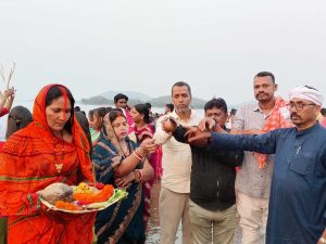 Dhanbad News: छठव्रतियों ने अस्ताचलगामी सूर्य को दिया अर्घ्य