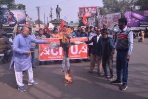 Dhanbad News: एचइसी को बचाने के लिए सीटू ने केंद्र सरकार का पुतला फूंका