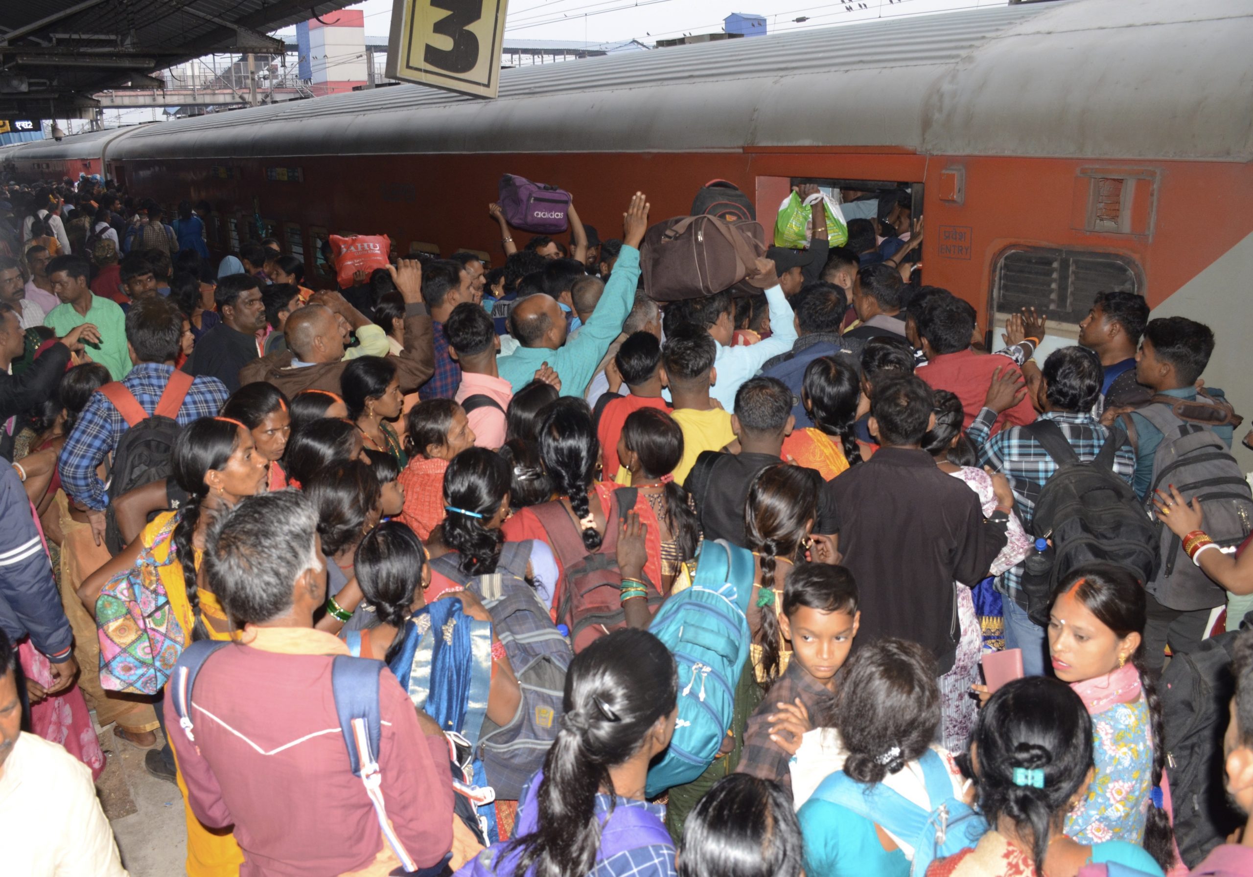 पहले से पूरी तरह से भर कर ग्वालियर धनबाद एक्सप्रेस पहुंची. ऊपर से धनबाद स्टेशन पर हजारों यात्रियों की भीड़ थी. ट्रेन में गिनते के लोग ही चढ़ पाये. कोई गेट के हैंडल को पकड़ कर लटक गया तो कोई शौचालय के बगल की जगह में खड़ा हो गया. सीट के साथ ही आने-जाने के रास्ते में भी लोग खड़े थे. कोई अपने बच्चे को लेकर इस भीड़ का सामना कर रहा था, तो कोई बुजुर्ग माता-पिता को साथ लेकर ट्रेन में सवार था. .सात घंटे विलंब से पहुंची पूर्वा एक्सप्रेस :