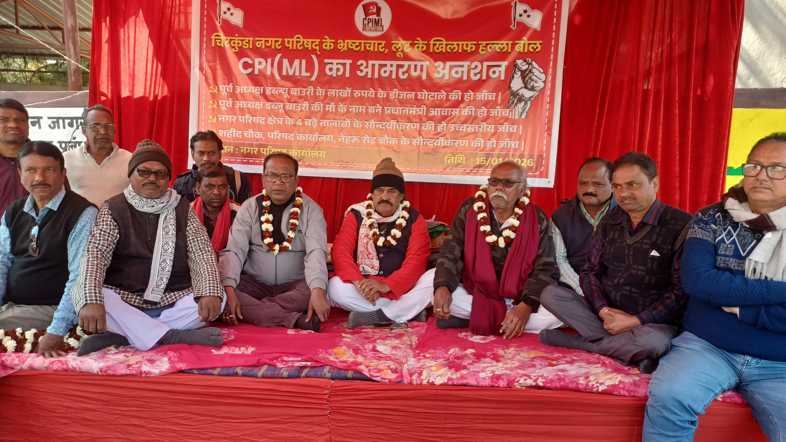 Dhanbad News: चार सूत्री मांगों को लेकर आंदोलन Dhanbad News: भाकपा माले चिरकुंडा नगर कमेटी ने चार सूत्री मांगों को लेकर चिरकुंडा नप कार्यालय के समक्ष गुरुवार से भूख हड़ताल शुरू कर दी है. माले के संयोजक श्रीकांत सिंह, संतु चटर्जी व कल्याण राय को जिला सचिव बिंदा पासवान व जिप सदस्य बादल बाउरी ने माला पहनाकर अनशन पर बैठाया. इस दौरान श्रीकांत सिंह की अध्यक्षता में सभा हुई. संचालन अमरेश चक्रवर्ती ने किया. जिला सचिव बिंदा पासवान ने कहा कि चिरकुंडा नप में पिछले कार्यकाल में जमकर भ्रष्टाचार हुआ है. पार्टी इसकी जांच कर रिपोर्ट सार्वजनिक करने की मांग कर रही है, लेकिन नप प्रशासन चुप है. माले की चार सूत्री मांगों में पूर्व नप अध्यक्ष डबलू बाउरी के कार्यालय में लाखों के डीजल घोटाले की जांच, पूर्व अध्यक्ष डबलू बाउरी की मां के नाम बने प्रधानमंत्री आवास योजना की जांच, चार बड़े तालाबों के सौंदर्यीकरण की जांच, शहीद चौक, परिषद कार्यालय व नेहरू रोड चौक के सौंदर्यीकरण की जांच आदि शामिल है. मौके पर जिप सदस्य बादल बाउरी, आगम राम, राजू अंसारी, चंदन सिंह, अमरेश चक्रवर्ती, लक्ष्मण प्रसाद, बिजेंद्र सिंह, वरुण दे, सतेंद्र प्रसाद, कौशिक आस, दीनानाथ रविदास, अभय प्रसाद सिंह, रामनारायण मेहता, जियाउद्दीन शाह, शंखनील गांगुली, बुवाई बनर्जी, शेरू खान, विश्वजीत गोराई, अशोक राम, मोतीलाल क्षेत्री, झंटू कांजीलाल, अर्चना सिंह, नांटू गोस्वामी आदि थे.