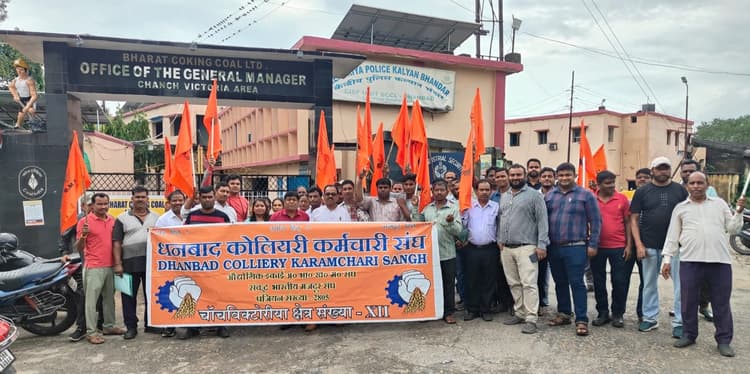 Dhanbad News:धनबाद कोलियरी कर्मचारी संघ ने 24 सूत्री मांगों को लेकर गुरुवार को बीसीसीएल सीवी एरिया के जीएम कार्यालय के समक्ष प्रदर्शन किया. बाद में जीएम को मांग पत्र सौंपा. जीएम सुधाकर प्रसाद ने सभी मांगों पर सकारात्मक पहल करने का आश्वासन दिया. प्रदर्शन में महेश तांती, लालमोहन दास नागेंद्र कुशवाहा, गुड्डू सिंह, मंटू कुमार सहित दर्जनों सदस्य शामिल थे.क्या है यूनियन की मांगें