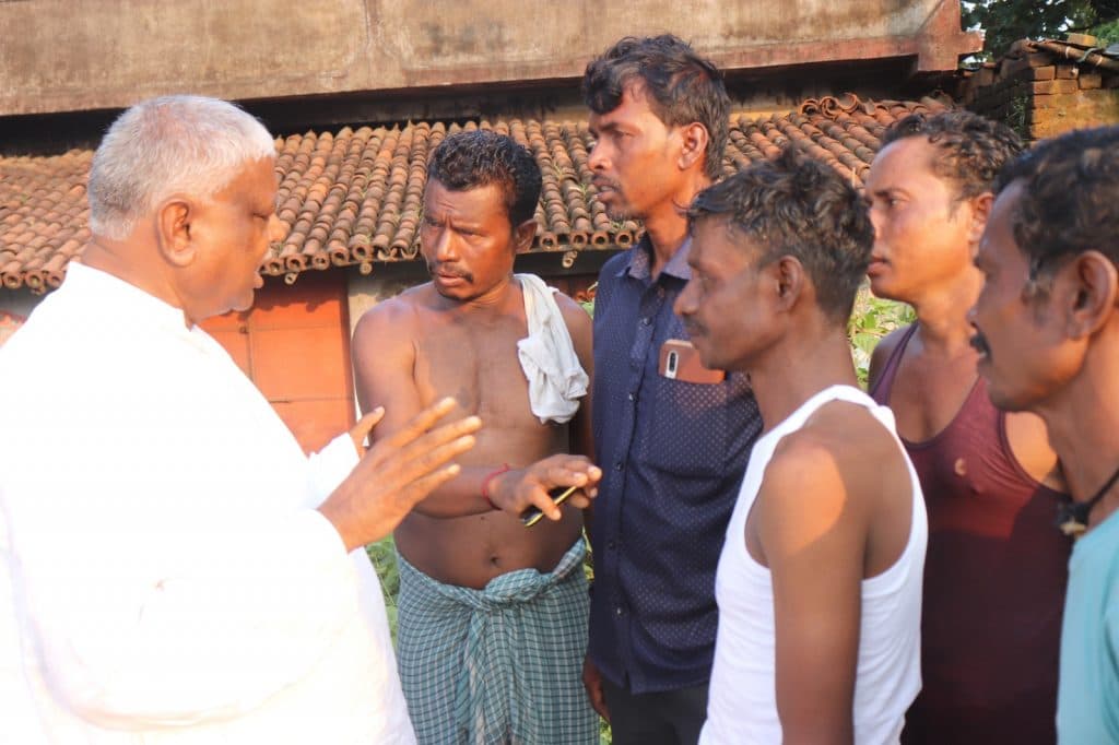 गांव में लोगों के साथ बात करते मथुरा प्रसाद महतो.