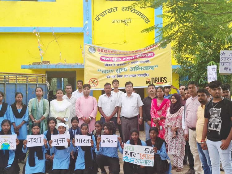 Dhanbad News : जाताखूंटी स्थित डिग्री कॉलेज टुंडी में शुक्रवार को नशा मुक्ति पर विशेष जागरूकता कार्यक्रम का आयोजन किया गया. कार्यक्रम का उद्देश्य गांव के लोगों, विशेषकर युवाओं को नशे के दुष्प्रभावों से अवगत कराना और उन्हें नशामुक्त स्वस्थ जीवन की ओर प्रेरित करना था. इस दौरान प्राचार्य डॉ इंद्रजीत कुमार, नशा मुक्त भारत अभियान के कॉलेज को-ऑर्डिनेटर प्रो अविनाश कुमार, कॉलेज के एनएसएस स्वयंसेवकों और विद्यार्थियों ने नुक्कड़ नाटक, गीत और भाषण के माध्यम से नशा मुक्त समाज का संदेश दिया.