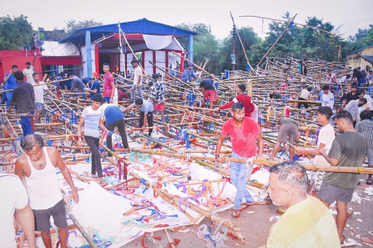 दुर्गोत्सव के उमंग पर मौसम की मार, तेज हवा से 15 लाख का पंडाल धराशायी