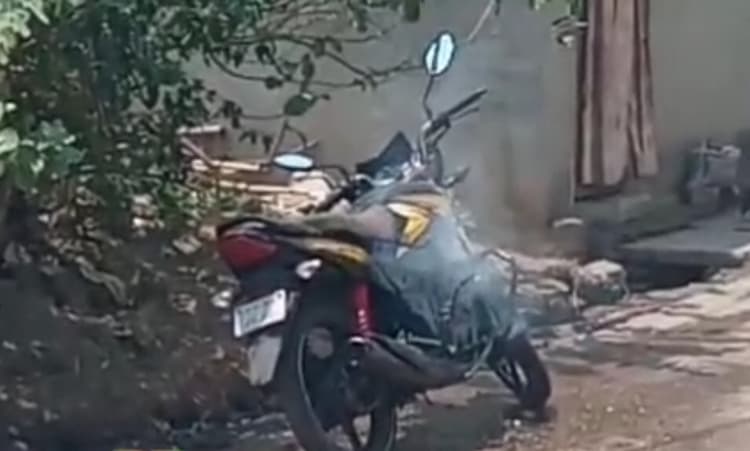 मरम्मत हो रही बाइक में अचानक लगी आग