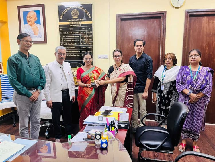 Dhanbad News: बीबीएमकेयू ने पूर्ववर्ती छात्रों से जुड़ाव बढ़ाने की दिशा में पहल की है. विश्वविद्यालय ने तय किया है कि प्रत्येक विभाग अपने-अपने पूर्व छात्रों को सम्मानित करेगा. इसी क्रम में शुक्रवार को आर्ट एंड कल्चर विभाग की पूर्ववर्ती छात्रा शारदा कुमारी गिरि को विश्वविद्यालय में आयोजित कार्यक्रम में सम्मानित किया गया. कुलपति डॉ राम कुमार सिंह की अध्यक्षता में आयोजित समारोह में विभागाध्यक्ष डॉ ताप्ती चक्रवर्ती, डॉ एमके सिंह, डॉ नविता गुप्त समेत कई शिक्षक मौजूद रहे. शारदा को प्रतीक चिह्न देकर सम्मानित किया गया. कुलपति ने कहा कि पूर्ववर्ती छात्र विश्वविद्यालय की पहचान होते हैं. उन्हें सम्मानित कर विश्वविद्यालय अपने गौरवशाली इतिहास को संजो रहा है. उन्होंने बताया कि यह पहल प्रत्येक विभाग में की जायेगी. 20 अगस्त को आर्ट एंड कल्चर विभाग की ओर से पहला औपचारिक कार्यक्रम आयोजित होगा. शारदा गिरि ने बीबीएमकेयू से मास्टर इन थिएटर आर्ट्स की डिग्री ली है और वर्तमान में राष्ट्रीय स्तर पर नाट्य निर्देशन और सांस्कृतिक क्षेत्र में कार्य कर रही हैं. यह विश्वविद्यालय के लिए गर्व की बात है.