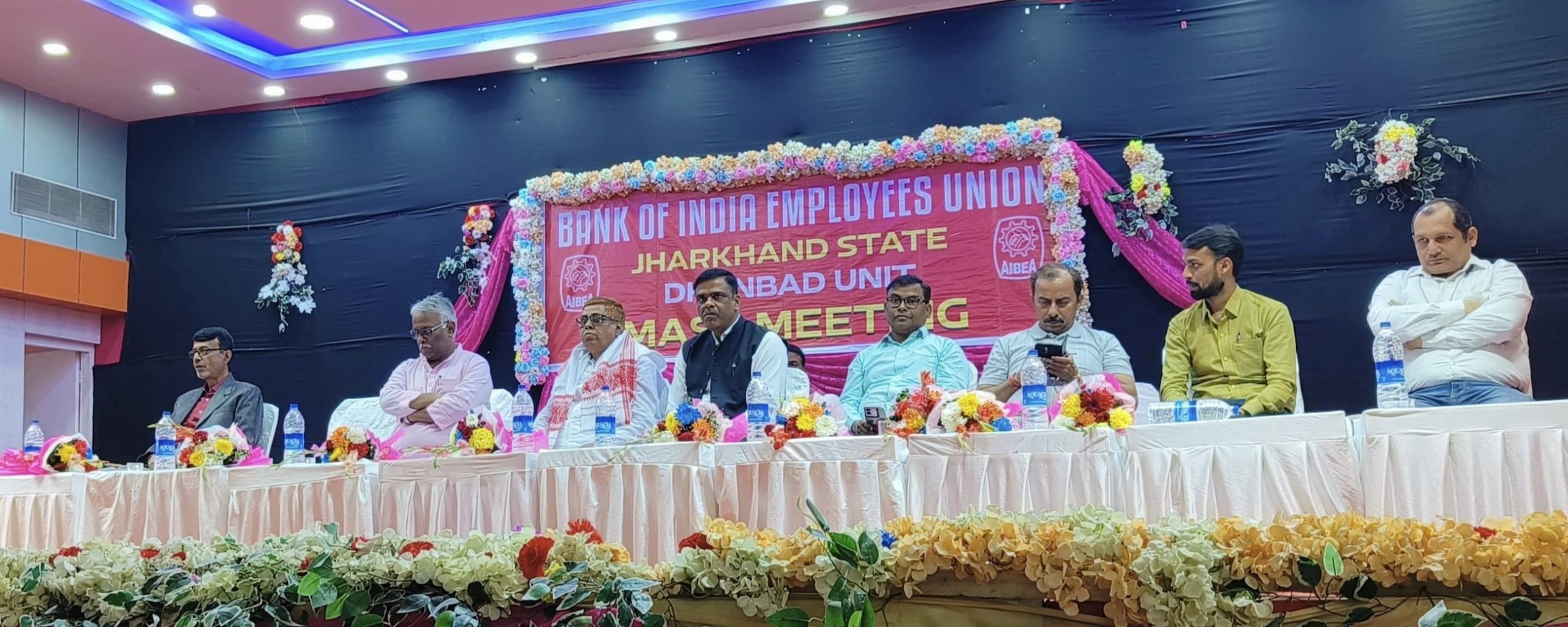 सभा में मंचासीन यूनियन के पदाधिकारी.