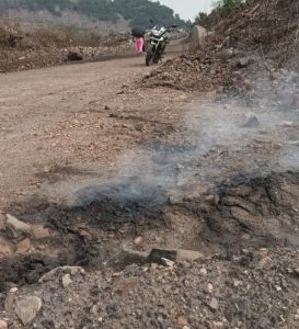 केशरगढ़ के रास्ते पर पर बना गोफ, उठ रहा तेज धुआं