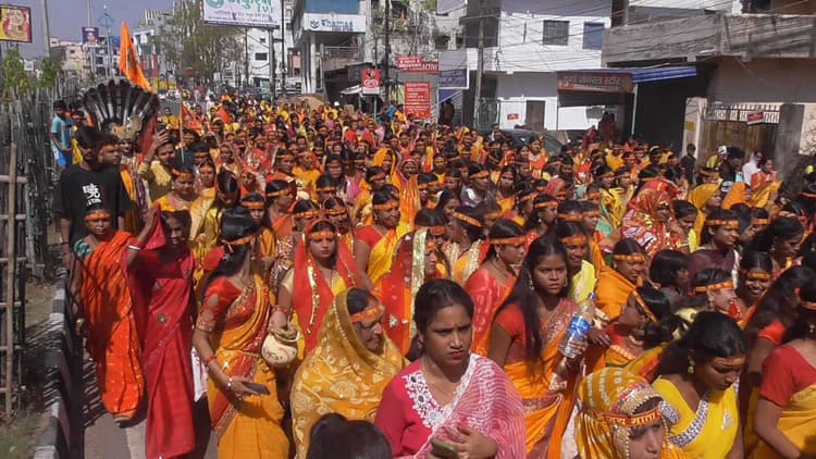 सरायढेला के लोहारकुल्ही छठ तालाब स्थित बाबा रामेश्वर महादेव मंदिर के वार्षिकोत्सव पर रविवार को श्रीश्री 108 रुद्र महायज्ञ की शुरुआत कलश शोभायात्रा के साथ हुई. मुख्य पुरोहित आचार्य केदार एवं सिकंदर पांडेय के सान्निध्य व मुख्य यजमान विजय साव के नेतृत्व में लोहारकुल्ही से भव्य कलश निकाली गयी. शोभायात्रा में 501 महिलाएं कलश लेकर शामिल हुईं. कलश यात्रा श्री रामेश्वर महादेव मंदिर से शुरू होकर वृंदावन कॉलोनी स्थित तालाब तक गयी. यहां, महिलाओं ने कलश में जल भरा और वापस रामेश्वर महादेव मंदिर पहुंची. शोभायात्रा में शामिल श्रद्धालु बैंड-बाजे, ढोल-नगाड़े के साथ भक्ति गीतों पर नाचते-गाते चल रहे थे. मंदिर पहुंचने के बाद विधि विधान से कलश स्थापित किये गये. आयोजन में अभिषेक, संदीप, सुजीत, आकाश, प्रकाश, अनूप, विकास, सूरज मिर्धा, रवि मिर्धा, गोवर्धन रजवार, मुन्ना सिंह, चंदन सेन, अमर रजवार, बबलू रजवार आदि सक्रिय हैंडिस्क्लेमर: यह प्रभात खबर समाचार पत्र की ऑटोमेटेड न्यूज फीड है. इसे प्रभात खबर डॉट कॉम की टीम ने संपादित नहीं किया है