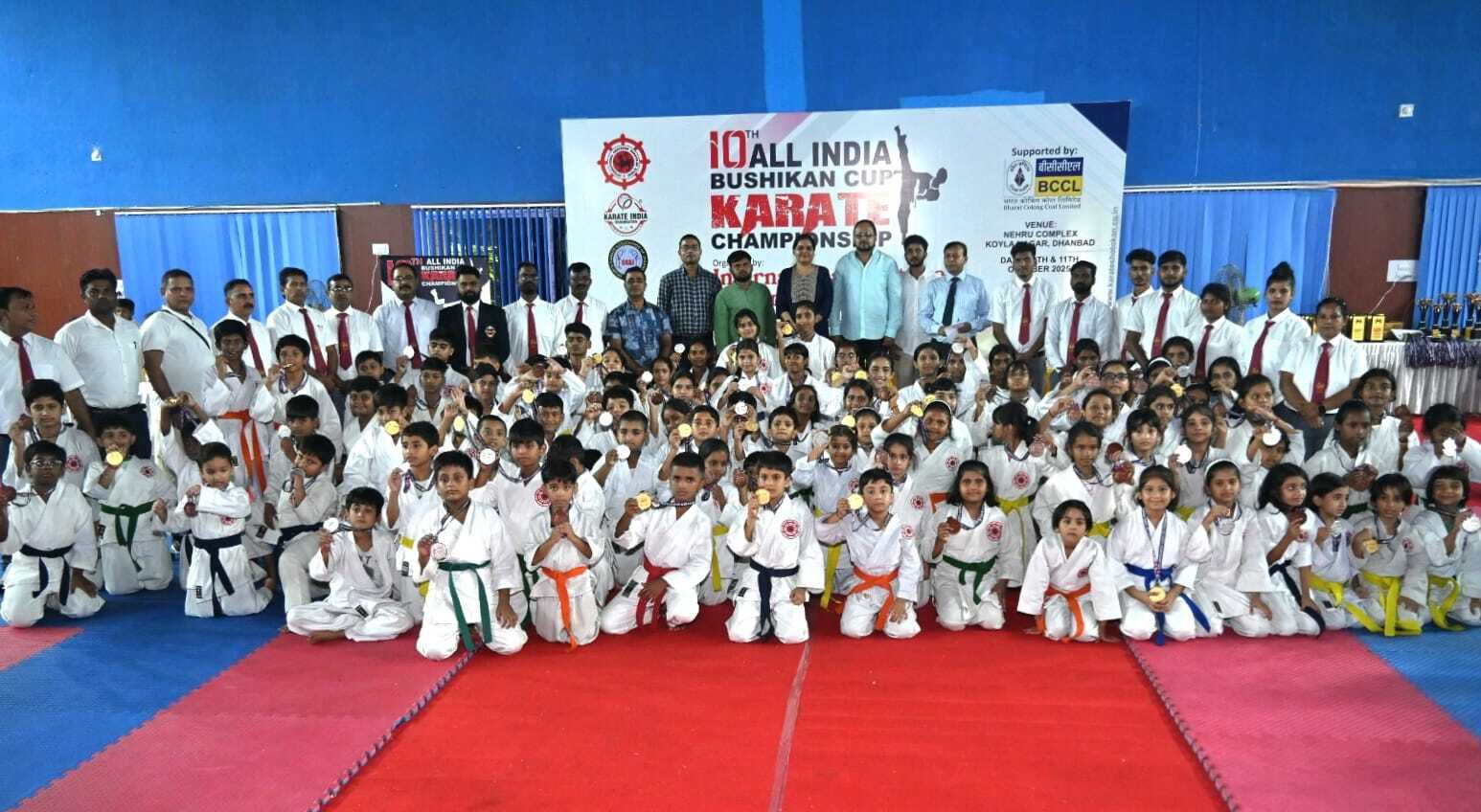इंटरनेशनल शोतोकान कराटे क्योकाई की ओर से आयोजित 10वीं आल इंडिया बुशिकान कप कराटे चैंपियनशिप शनिवार देर रात को कोयला नगर धनबाद स्थित नेहरू कॉम्प्लेक्श में संपन्न हुआ. सभी वर्गों में झारखंड टीम ने सर्वाधिक पदक के साथ ओवरआल चैंपियनशिप ट्रॉफी पर अपना कब्जा जमाया. जबकि पश्चिम बंगाल दूसरे और उत्तर प्रदेश की टीम तीसरे स्थान पर रही. दो दिवसीय कराटे चैंपियनशिप में दूसरे दिन 5 से 13 वर्ष तक के बालक व बालिकाओं की कुमिते और काता की स्पर्धाएं हुईं.