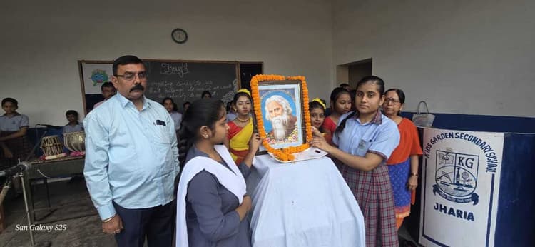 Dhanbad News : किड्स गार्डेन सेकेंडरी विद्यालय झरिया में शुक्रवार को कवि गुरुदेव रवींद्रनाथ टैगोर की जयंती पर सांस्कृतिक कार्यक्रम का आयोजन किया गया. विद्यार्थियों ने रवींद्रनाथ टैगोर के जीवन, साहित्य, संगीत और शिक्षा के क्षेत्र में उनके योगदान पर आधारित वक्तव्य, कविताएं, नृत्य और गीत प्रस्तुत किये. समूहगान ने समस्त शिक्षकों और छात्रों को भावविभोर कर दिया. इस दौरान निदेशक डॉ शोभा सिन्हा ने कहा कि अंतर्राष्ट्रीय स्तर पर गीतांजलि टैगोर का सबसे प्रसिद्ध कविता संग्रह है, जिसके लिए उन्हें 1913 में साहित्य में नोबेल पुरस्कार से सम्मानित किया गया था. प्रधानाचार्य डॉ स्नेहलता ने कहा कि रवींद्रनाथ टैगोर एकमात्र ऐसे कवि हैं, जिनकी कविता दो देशों का राष्ट्रगान बनी. मौके पर शिक्षक प्रभारी एके बनर्जी, दीपा राय चौधरी, संगीता मल्लिक, अपर्णा दत्ता, सुरजीत दत्ता आदि थे.