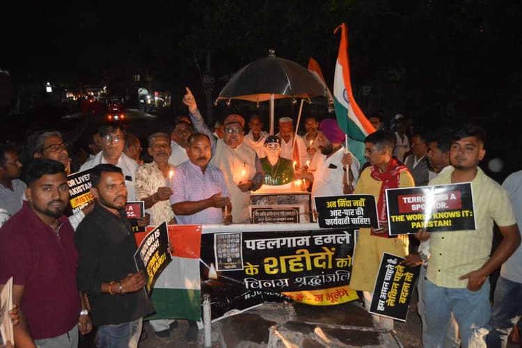 सिंदरी. राजद कार्यालय रोहड़ाबांध से जिलाध्यक्ष तारकेश्वर यादव के नेतृत्व में वीर कुंवर सिंह चौक होते हुए सूर्यदेव सिंह चौक तक कैंडल मार्च निकाला गया. मौके पर विनय सिंह, शिवजी यादव, विनोद यादव, प्रदीप पॉल, प्रकाश महतो, हरेंद्र सिंह, राजू यादव, राहुल कुमार, मुनेश्वर यादव, ऋषि यादव, मनोज सिंह, संजीव यादव, राकेश यादव, कृष्ण यादव, राजकुमार यादव आदि थे. वहीं भाकपा माले ने को-ऑपरेटिव मोड़ से भूजा मोड़ तक कैंडल मार्च निकाला. एक मिनट का मौन रख कर मृत पर्यटकों को श्रद्धांजलि दी. मौके पर सुरेश प्रसाद, राजीव मुखर्जी, छोटन चटर्जी, जीतू सिंह, प्रकाश महतो, सहदेव सिंह, राजू पांडेय, अमर सिंह, बिरंची महतो, मधु दास, दशरथ ठाकुर, पूरन सिंह ,मधु दास ,सुभाष हांसदा, शुभम सिंह, गोपाल महतो, राजेश मुखर्जी, अमित सिंह ,जगतु महतो ,श्रवण महतो, मदन प्रसाद, गंगाधर कर्मकार, भगत सिंह आदि थे.डिस्क्लेमर: यह प्रभात खबर समाचार पत्र की ऑटोमेटेड न्यूज फीड है. इसे प्रभात खबर डॉट कॉम की टीम ने संपादित नहीं किया है