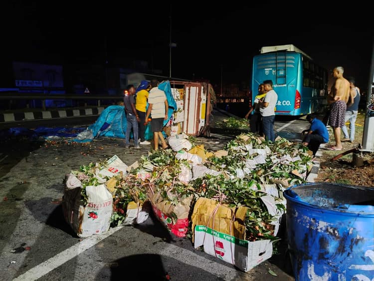 तोपचांची थाना क्षेत्र के जीटी रोड स्थित तोपचांची थाना के समीप बंगाल से मोहनिया जा रहा लीची लदा पिकअप वैन बुधवार की देर रात असंतुलित होकर पलट गया. चालक ने बताया कि टायर ब्लास्ट होने से वाहन पलट गया. तोपचांची पुलिस ने वाहन को जब्त कर लिया है. घटना के बाद व्यापारी दुर्घटनाग्रस्त वाहन पर लदा लीची को मोहनिया भेजने के लिए दूसरे वाहन पर लोड कराने लगा. इसी दौरान गश्ती दल ने ड्यूटी पर तैनात दूसरी पार्टी को वाहन सौंप कर चला गया. वैन चालक दुर्घटनाग्रस्त वाहन को टोचन कर ले जाने लगा. इसकी जानकारी मिलते ही मुंशी व ओडी ऑफिसर ने उसका पीछा किया और हरिहरपुर थाना क्षेत्र के जीटी रोड स्थित सिंहडीह से वाहन को पकड़ कर जब्त कर लिया.नक्सली हमले की आशंका से थाना में दुबक गये पुलिसकर्मीतोपचांची थाना के गेट के पास जीटी रोड पर पिकअप वैन का टायर ब्लास्ट होने के बाद जोरदार आवाज के कारण नक्सली हमले की आशंका से पुलिसकर्मी थाना में दुबक गये. ग्रामीण भी अनहोनी की आशंका के कारण भागने लगे. घटना के समय आंधी-पानी के कारण इलाका ब्लैक आउट था. बाद में पुलिस को वाहन का टायर फटने की जानकारी मिली. इसके बाद पुलिस ने राहत की सांस ली.