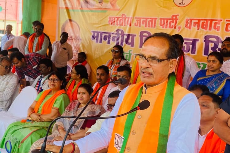 झरिया: मध्यप्रदेश के पूर्व मुख्यमंत्री और बीजेपी नेता शिवराज सिंह चौहान ने धनबाद लोकसभा क्षेत्र के झरिया के मानस मंदिर मैदान में चुनावी जनसभा को संबोधित किया. इस दौरान उन्होंने धनाबद लोस के बीजेपी प्रत्याशी ढुल्लू महतो को पक्ष में वोट देने की अपील की. उन्होंने लोगों को संबोधित करते हुए कहा कि मोदी सरकार में सबका विकास हुआ है. शिवराज ने कहा कि भारत एक बार विश्व गुरू बनने की राह में है.