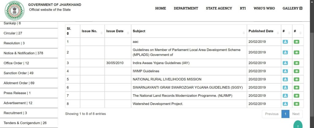 साइट पर अंतिम बार झारखंड स्टार्टअप पॉलिसी को 2023 में अपडेट किया गया. इस अपडेट में ना तो इशू नंबर है और ना ही तारीख. अंतिम अलॉटमेंट ऑर्डर 22.12.2023 में अपडेट किया गया. ऐक्ट सेक्शन में अंतिम अपडेट 2.11.2022 का है, जो सूचना 3.11.2017 में पास हुआ था.ग्रामीण विकास विभाग :